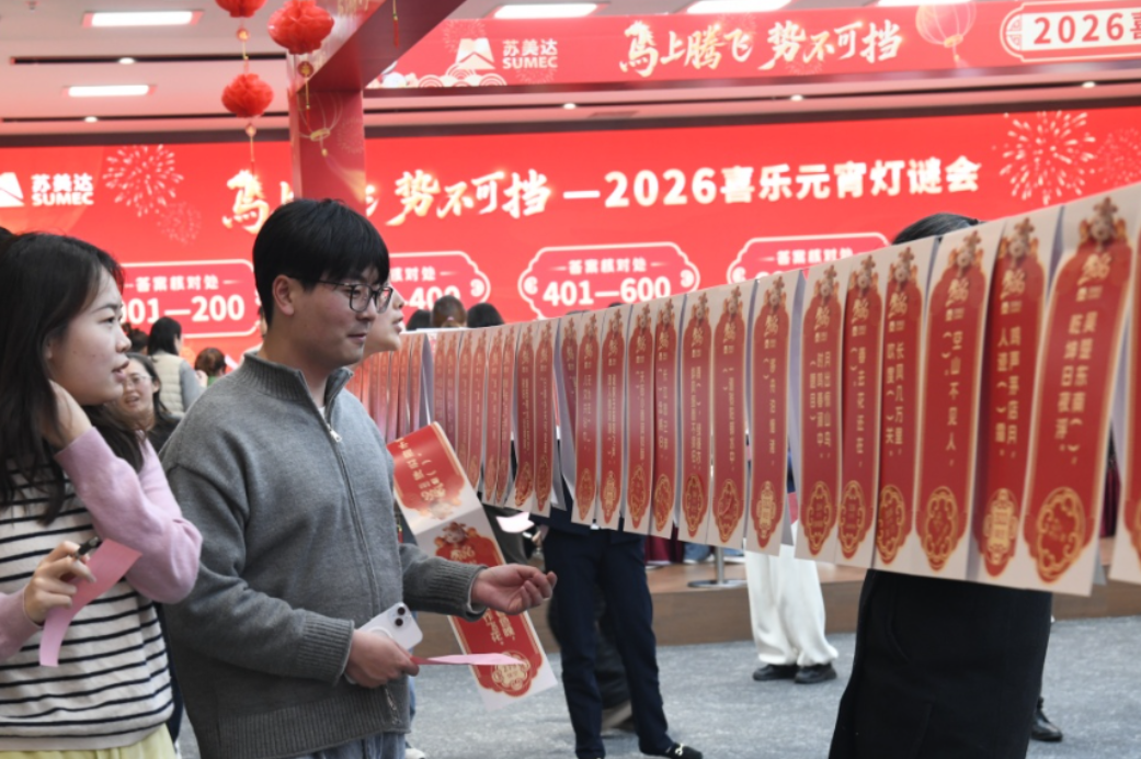 2026年03月03日駿馬奔騰啟新歲,華燈映月賀團圓。3月3日,在萬家燈火、闔家歡聚的元宵佳節之際,蘇美達“馬上騰飛 勢不可擋”喜樂元宵燈謎會如期舉行,全體蘇美達人歡聚一堂,共度佳節。